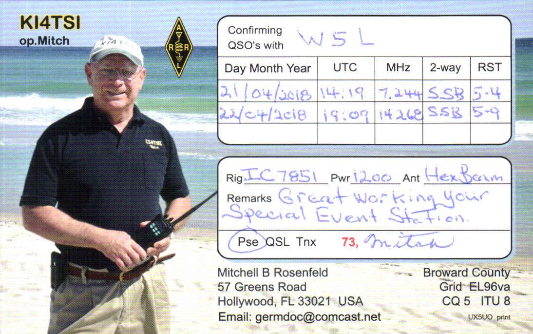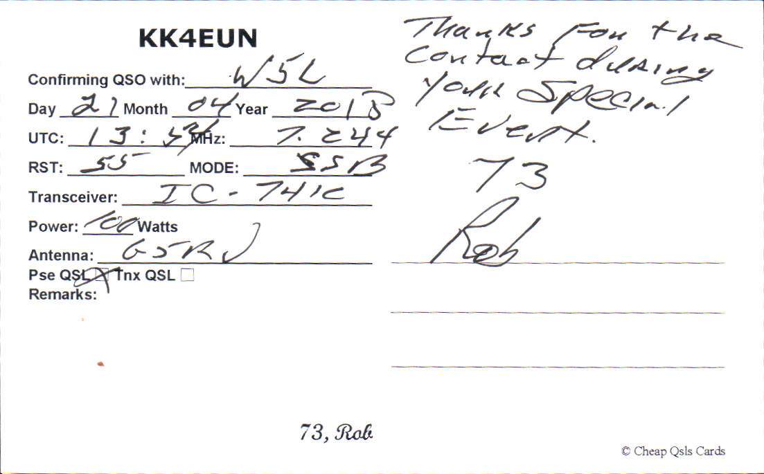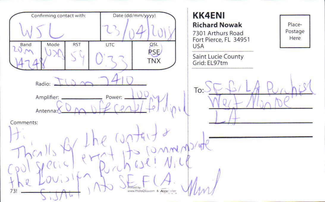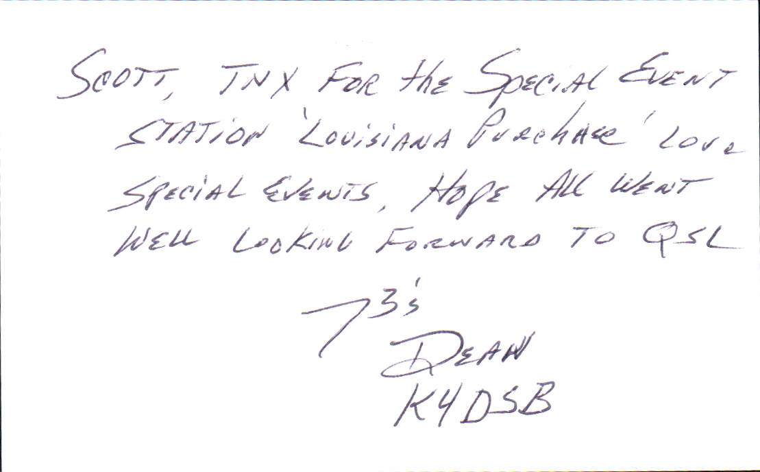 Louisiana Purchase Special Event Received QSL Cards From the 2022 event: W5L 2018 Call District 4 ◄ 1 2 3 ► From the 2020 event: From the 2019 event: From the 2018 event: