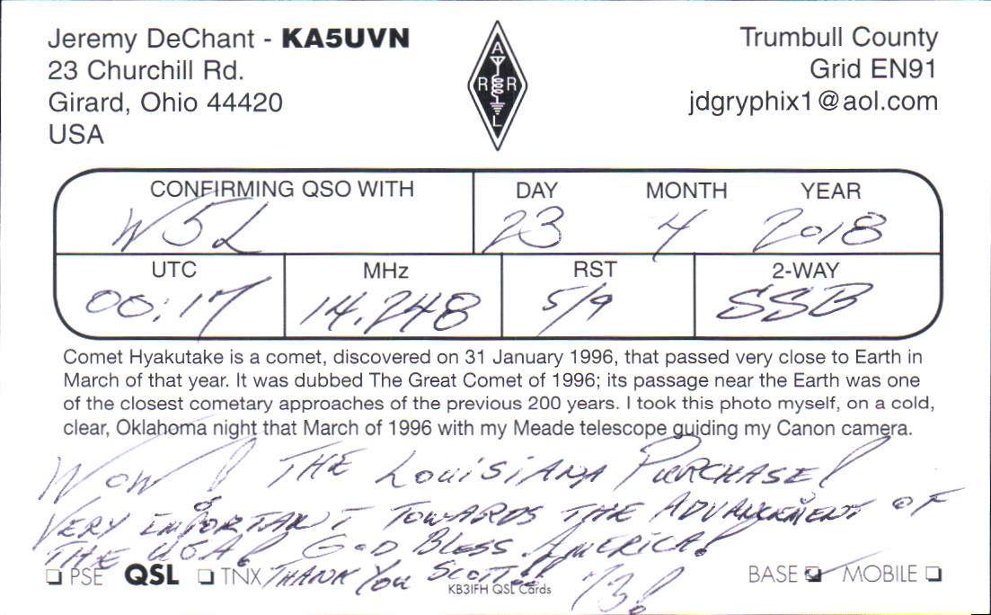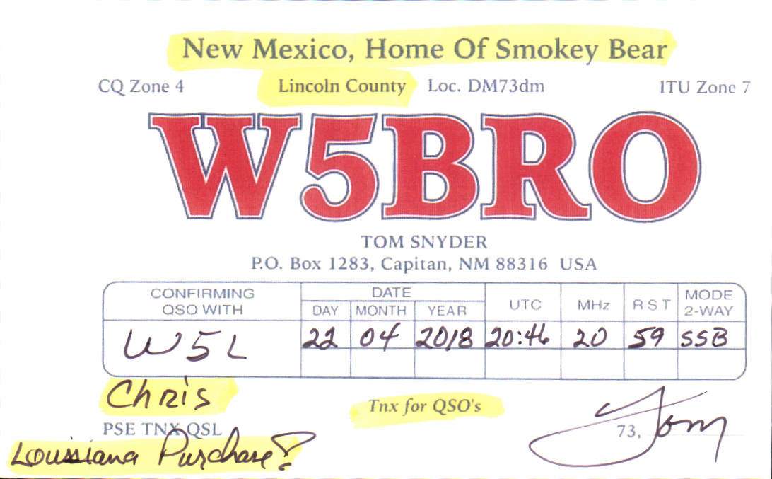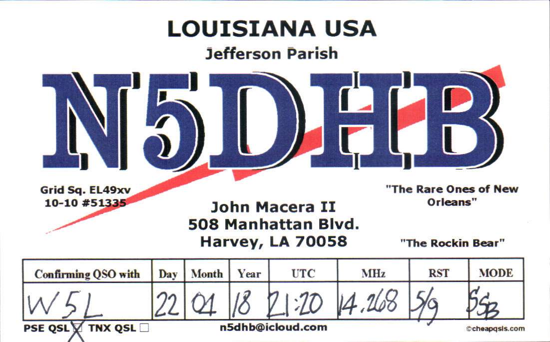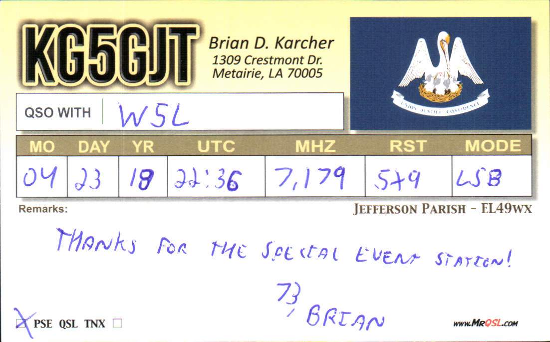 Louisiana Purchase Special Event Received QSL Cards From the 2022 event: W5L 2018 Call District 5 1 2 ► From the 2020 event: From the 2019 event: From the 2018 event: