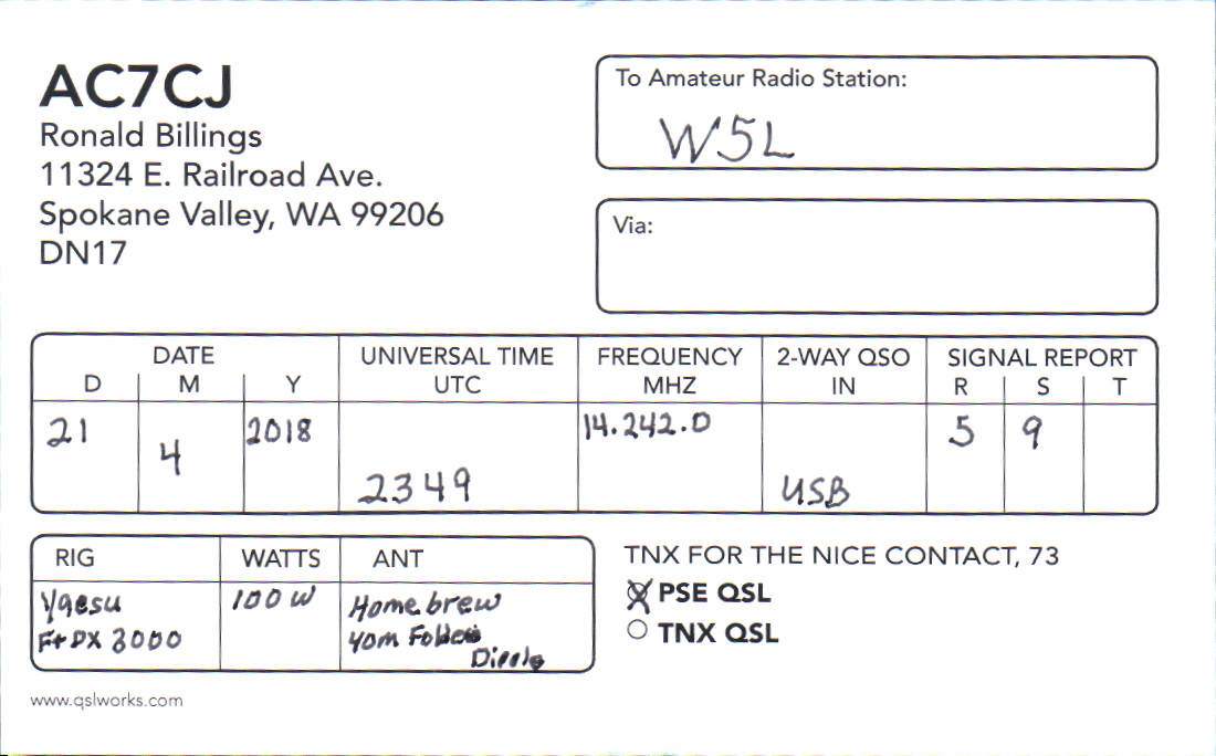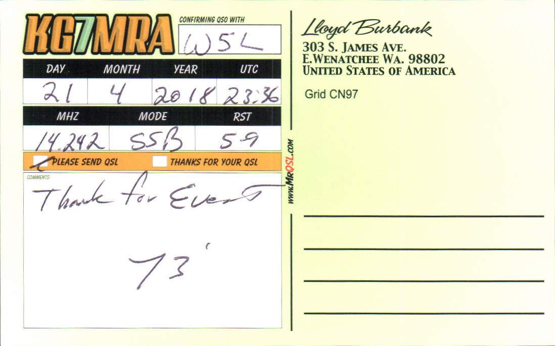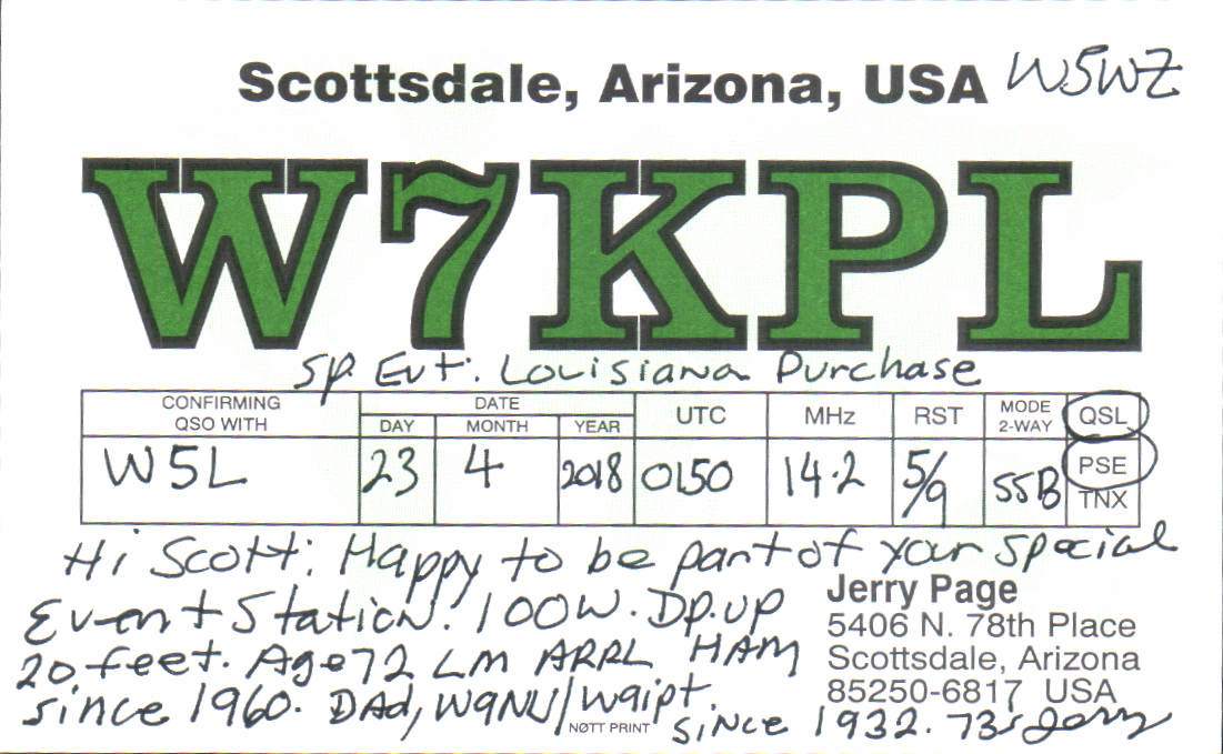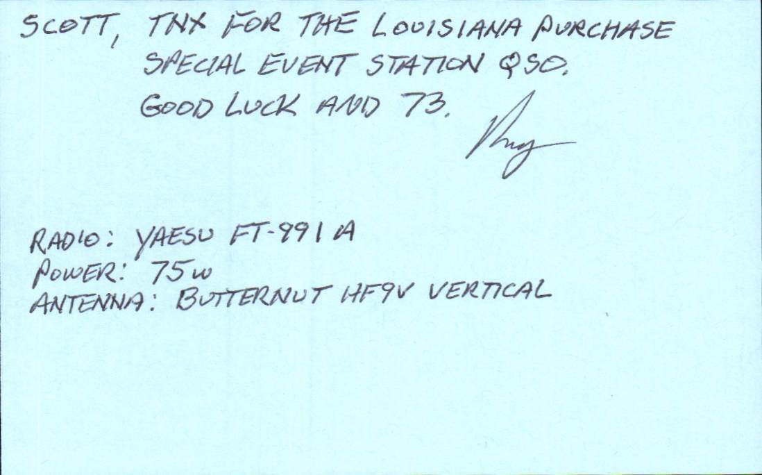 Louisiana Purchase Special Event Received QSL Cards From the 2022 event: W5L 2018 Call District 7 1 2 ► From the 2020 event: From the 2019 event: From the 2018 event: