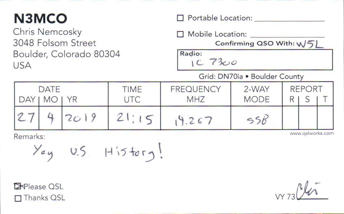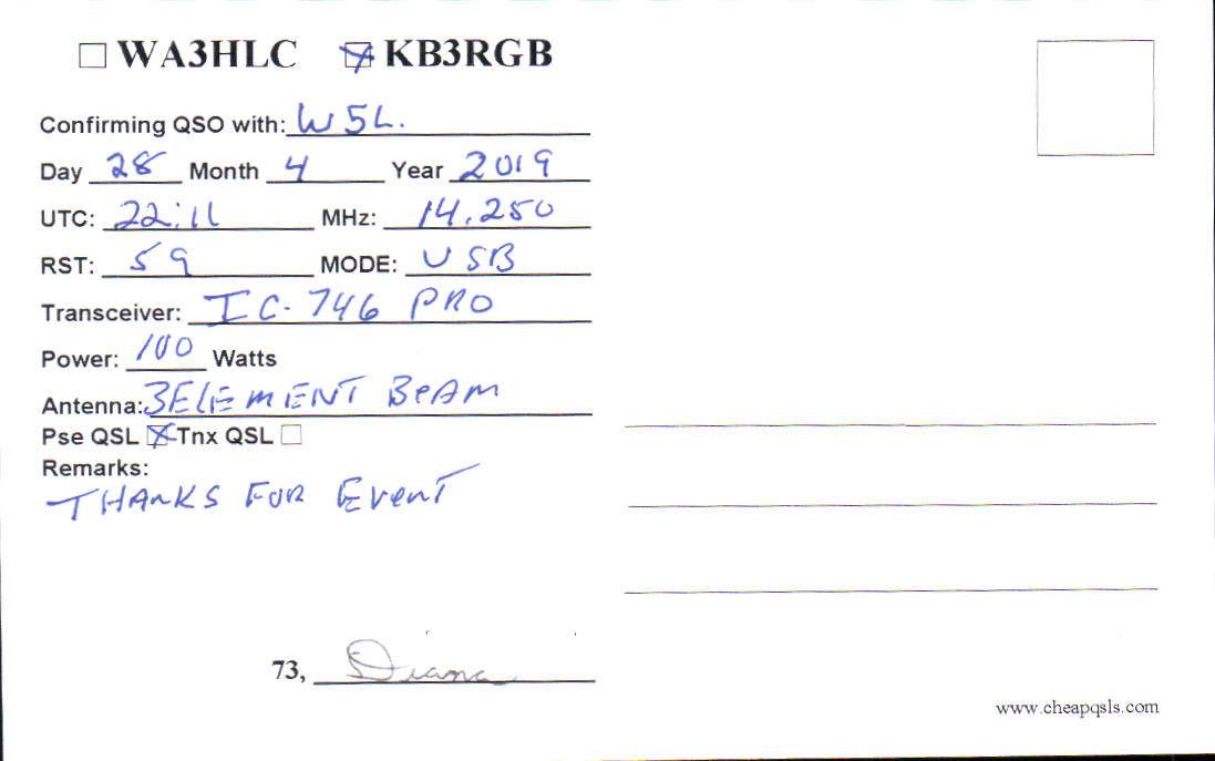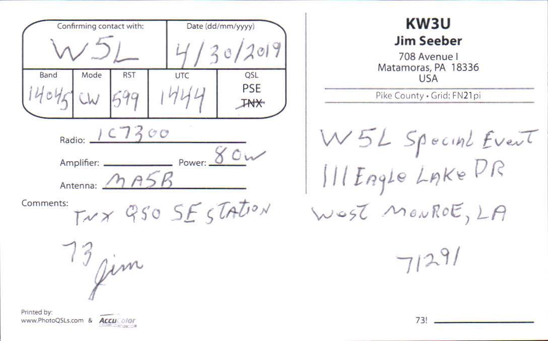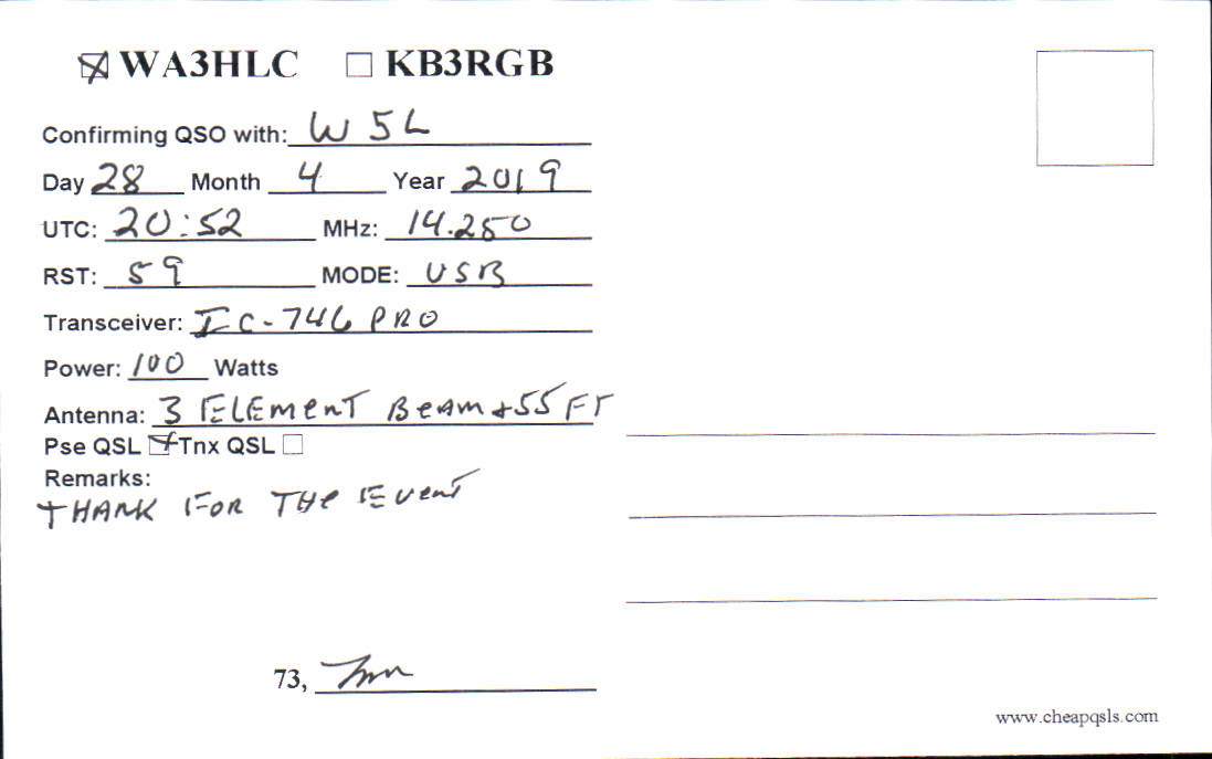 Louisiana Purchase Special Event Received QSL Cards From the 2022 event: W5L 2019 Call District 3 1 2 ► From the 2020 event: From the 2019 event: From the 2018 event: