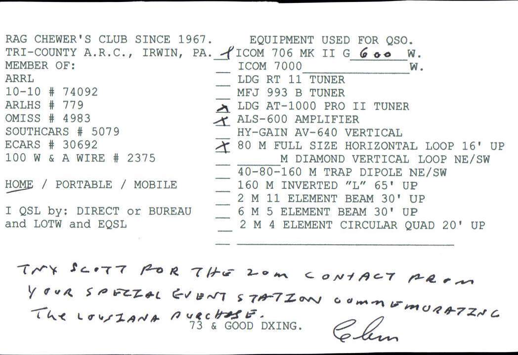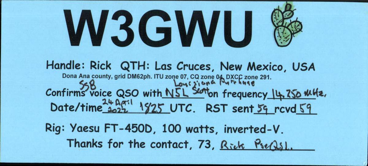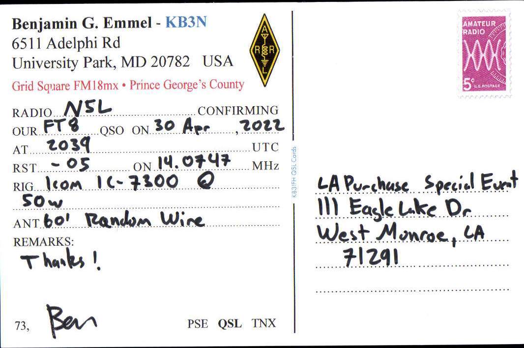 Louisiana Purchase Special Event Received QSL Cards From the 2022 event: N5L 2022 Rcvd QSLs » N5L 2022 CALL DISTRICT 3 1 2 ► From the 2020 event: From the 2019 event: From the 2018 event: