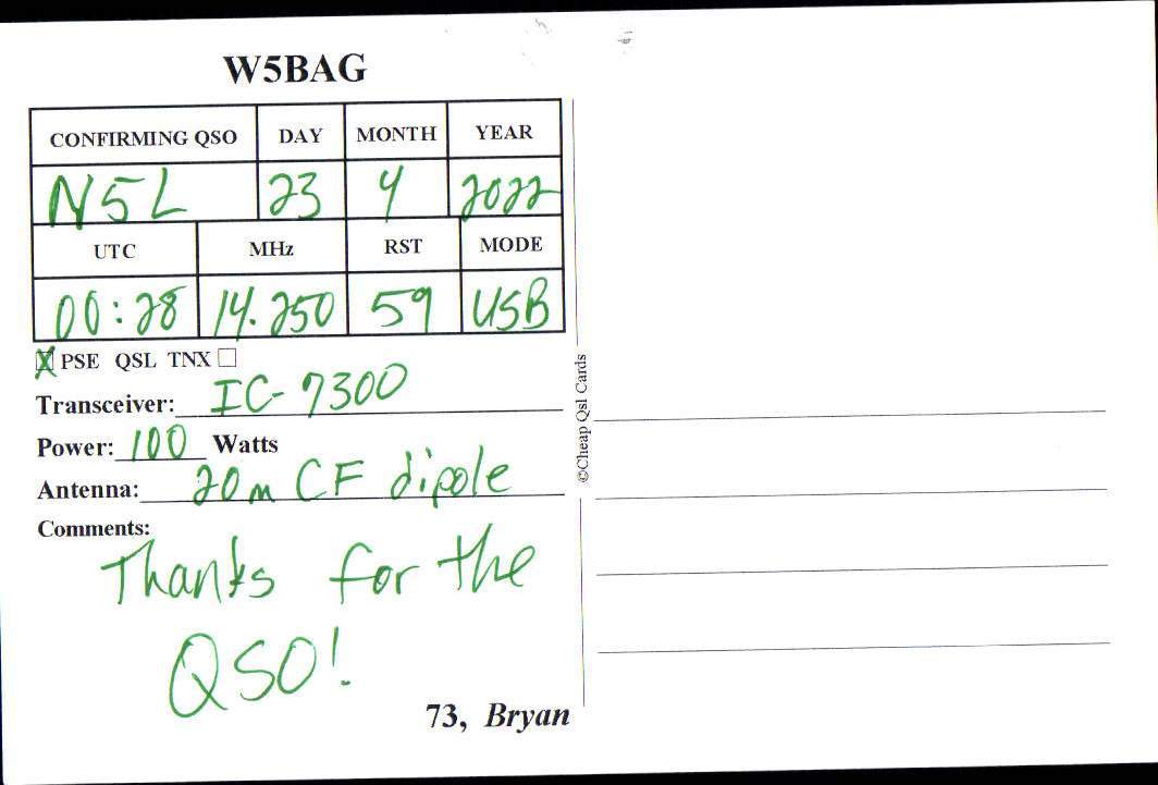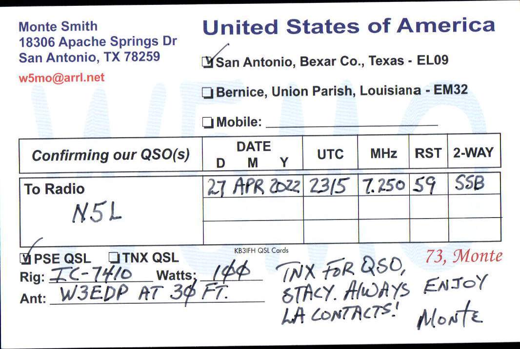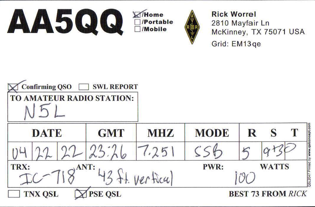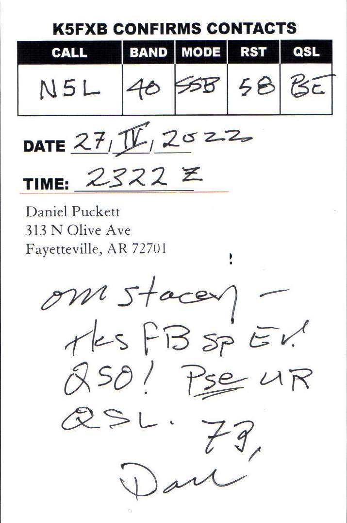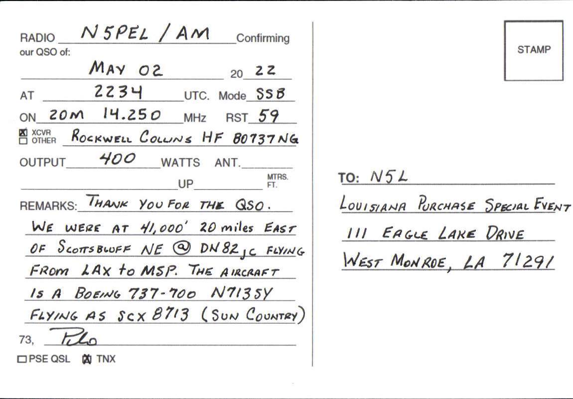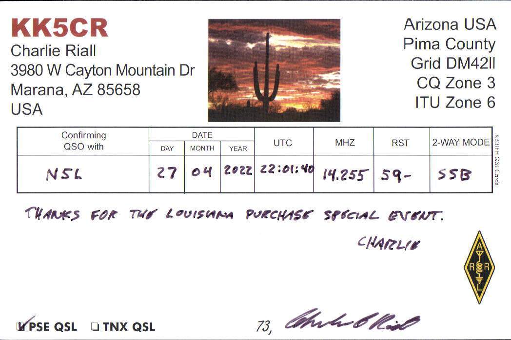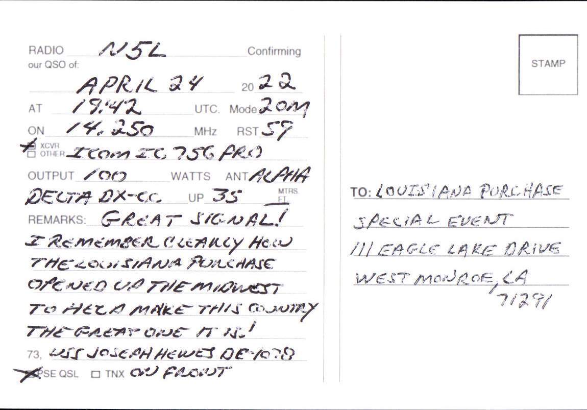 Louisiana Purchase Special Event Received QSL Cards From the 2022 event: N5L 2022 Rcvd QSLs » N5L 2022 CALL DISTRICT 5 1 2 ► From the 2020 event: From the 2019 event: From the 2018 event: